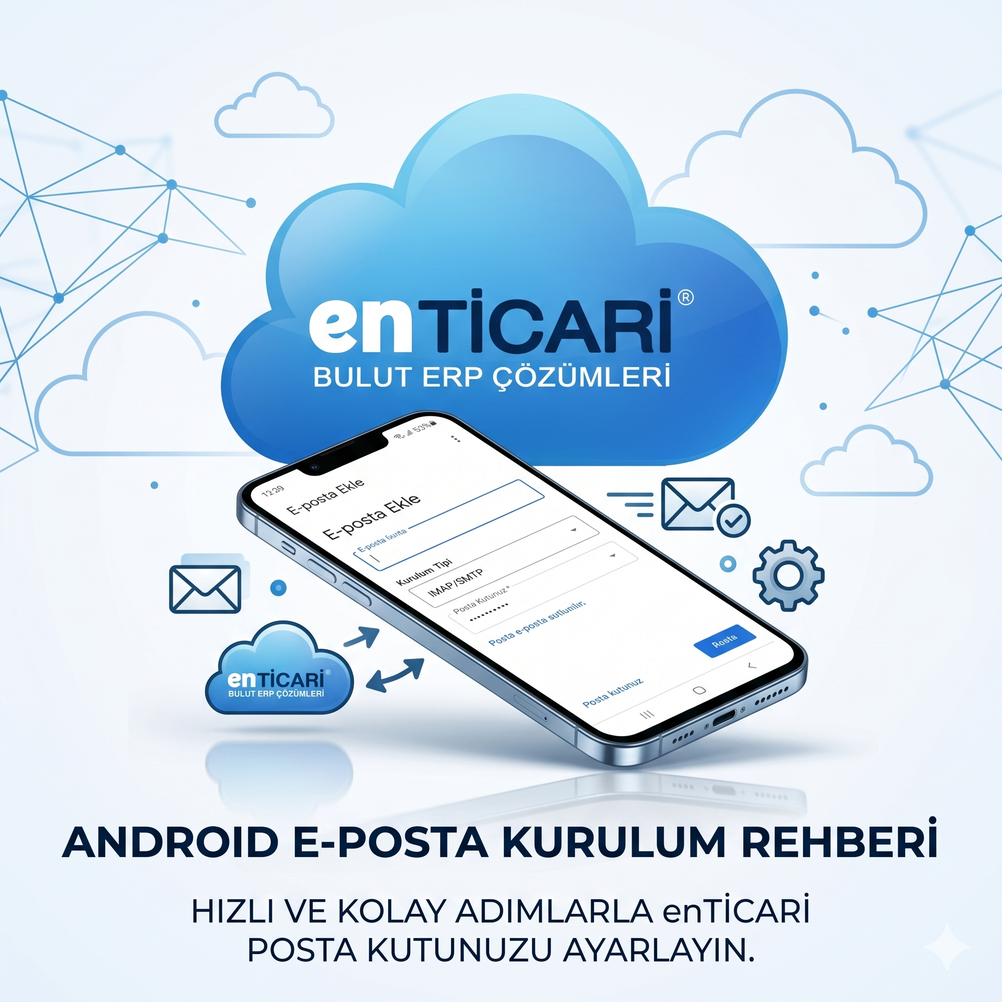 CEVAP: Aşağıdaki Yönergeleri Uygulayarak Android Cep Telefonunuzda enTİCARİ Bulut ERP’yi Kullanabilirsiniz. Cep Telefonunuzdan Tarayıcıdan, ben.enticari.com Adresine Giriş Yapıyoruz. Gelen Ekranda Sağ Üst Köşedeki “Üç Noktalı” Butona Tıklanır, Gelen Ekranda “Ana Ekrana Ekle” Butonuna Tıklanır, Gelen Ekranda Kısayol Oluştur Kısmına İstediğiniz İsmi Verdikten Sonra “Ekle ” Butonuna Tıklanır....